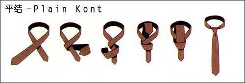 其特点在于先将宽端以180度由上往下扭转,并将折迭处隐藏于后方完成打结。