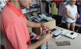 今天我们秀和领带织造有限公司迎来了一位很特别的客人:一位帅气的美国留学生,他来定制马甲的。