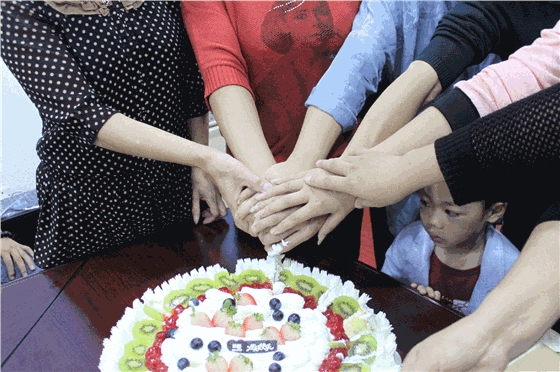 在主持人对寿星们送上祝福之后,活动进入温情环节,随着一阵轻柔舒缓的音乐,公司为寿星们送上了饱含关怀的大蛋糕,大家激动地围上去,对着蛋糕上温馨的 烛光许下各自的愿望。